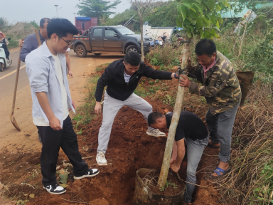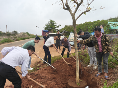 为响应湛江市农业局《关于发动全市驻镇帮镇扶村力量助力乡村绿化的通知》号召,持续发挥结对帮扶力量,积极践行“绿水青山就是金山银山”的绿色发展理念,集团机关党支部与官田村党总支部共同开展“党建引领 共植绿树”为主题的植树活动,两个支部的党员们在官田村主干道两边植树30余棵,以实际行动增绿美化进村入口路段,推动绿美乡村建设。借此契机,两支部的党员同志深入交流党建工作,促进了帮扶单位与帮扶地区基层党支部交流合作,进一步提升了帮扶工作成效。