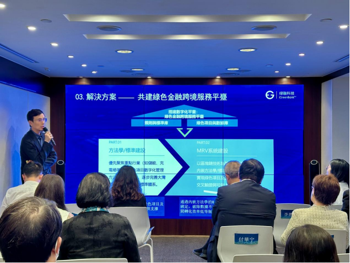 绿融(广州)信息科技公司总经理张涵先生带来“联合香港共建绿色金融跨境服务平台”宣讲。面对当前跨境绿色金融在标准、认证与价值转化等方面的共性瓶颈,他提出了一项关键的模式创新——构建“南沙标准化MRV(监测、报告、核查)+ 香港发行与交易”的“双中心”模式。该模式旨在形成一条优势互补、风险可控的价值链:绿融的技术赋能确保绿色资产的真实可信,南沙的政策与规则体系保障合规高效流动,而香港成熟的国际金融市场则最终实现其金融价值。这一合作框架,不仅为绿色债券、跨境信贷等金融活动提供了坚实的信任基础,更标志着两地在规则衔接与市场互联互通上迈出了实质性一步,共同为粤港澳大湾区的绿色低碳转型注入强劲动力。