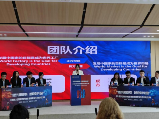 辩论交锋,热潮再涌。2025年11月11日,科金控股集团团委联合集团工会,于南沙金控大厦18楼大会议室成功举办“思辩图南 智领科金”鲲鹏杯英语辩论赛第四场决赛。本场决以“World Factory or World Market: Which Should Be the Goal for Developing Countries?为辩题,引导集团青年员工深入思考全球发展格局下发展中国家的战略路径选择。集团相关领导、各部门及子公司代表齐聚现场,共同见证这场兼具专业深度与思维活力的辩论盛会。