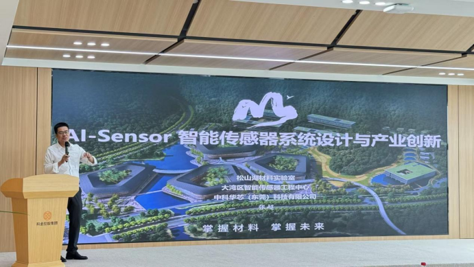 随后,松山湖材料实验室大湾区智能传感器工程中心负责人张超博士,介绍“AI - Sensor智能传感器系统设计与产品创新” 相关内容。张超及其团队在磁性功能材料、MEMS工艺、芯片电路设计等专业领域积累了丰富的实践经验。其团队孵化的中科华芯等产业化项目已完成了pre-A轮融资,客户包括东风汽车、国家电网等行业龙头,以及具身智能领域的头部企业等。