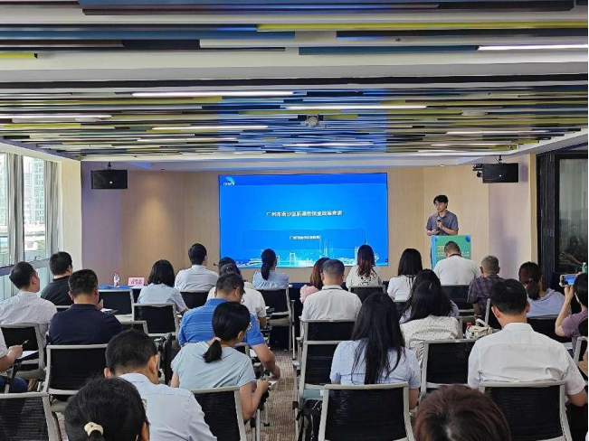 为贯彻落实《南沙方案》《南沙条例》《南沙意见》指示精神,进一步优化南沙营商环境,2025年5月12日下午,2025年南沙惠企政策包系列宣讲之商贸业、航运物流业专场活动在创享湾4栋6楼成功举办。本次活动由南沙开发区党工委政研室、南沙区商务局主办,广州南沙投资咨询有限公司承办,各镇街代表以及商贸业、航运物流业企业代表超40人参与。