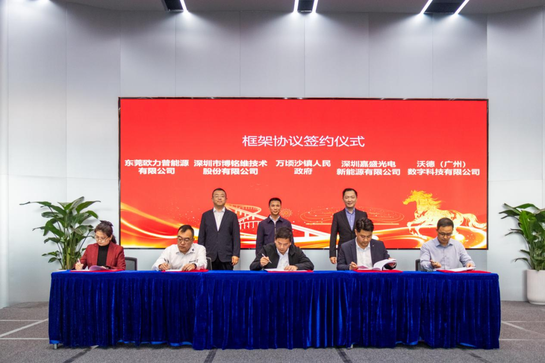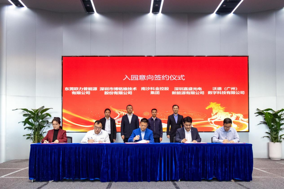 签约仪式上,万顷沙镇政府与东莞市欧力普新能源有限公司、沃德(广州)数字科技有限公司、深圳嘉盛光电新能源有限公司、深圳市博铭维技术股份有限公司签订框架协议。科金控股集团与上述企业同步签订了万顷沙产业园项目入园意向书。