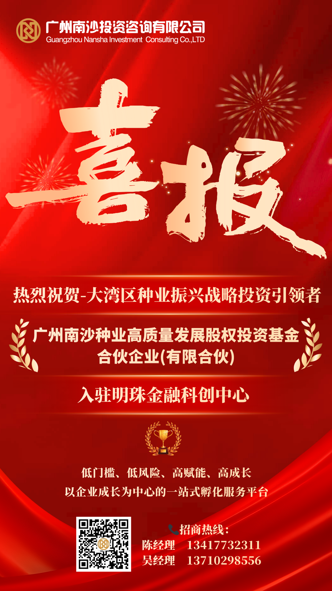 热烈祝贺——广州南沙种业高质量发展股权投资基金合伙企业(有限合伙)成功入驻明珠金融科创中心!该基金管理人为广东省种业集团种业振兴私募基金管理有限公司,将聚焦生物育种、数字育种等前沿领域,助力南沙打造大湾区种业创新高地,推动粤港澳大湾区农业科技现代化高质量发展。