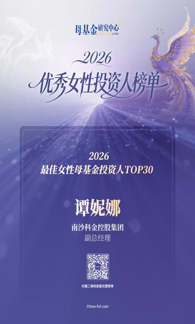 科金控股集团副总经理谭妮娜荣获“2026最佳女性母基金投资人TOP30”奖项,共同登榜的还有深圳天使母基金董事长迟东妍等知名投资家。
