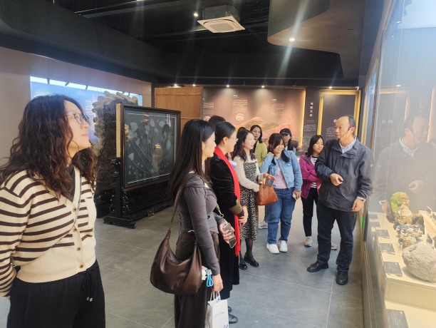 在南华珠宝艺术博物馆,馆内建筑简约大气、富有艺术格调,馆内丰富的珠宝矿物展品、精湛的技艺展示,让女职工们目不暇接。